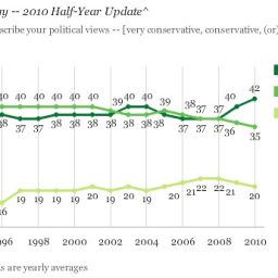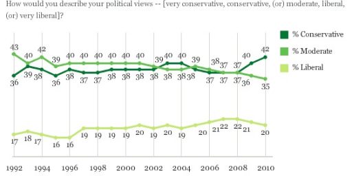If the trend continues, 2010 will mark a record number of conservatives for the Gallup poll since it began asking the question in 1992.