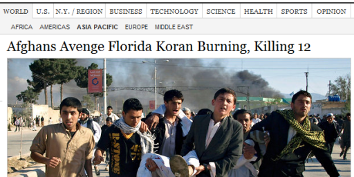The New York Times wins for “Afghans Avenge Florida Koran Burning, Killing 12.”