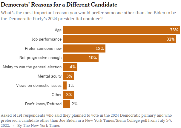 As to why Biden should be replaced, the small subsample of Democrats who wanted to replace Biden gave numerous rationales: