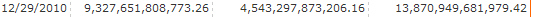 Debt on the second-last day of 2010 (12/30) – $9.33 trillion publicly held and $13.87 trillion total, on a preliminary 3Q2010 GDP of $14.75 trillion in current dollars and $13.28 trillion in chained 2005 dollars.