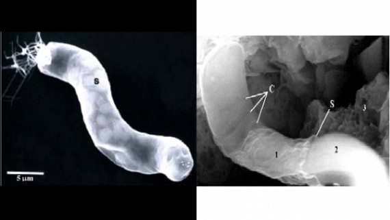 I seem to remember NASA scientists discovering something similar–a fossilized bacterium inside of a meteorite–about 15 years ago.