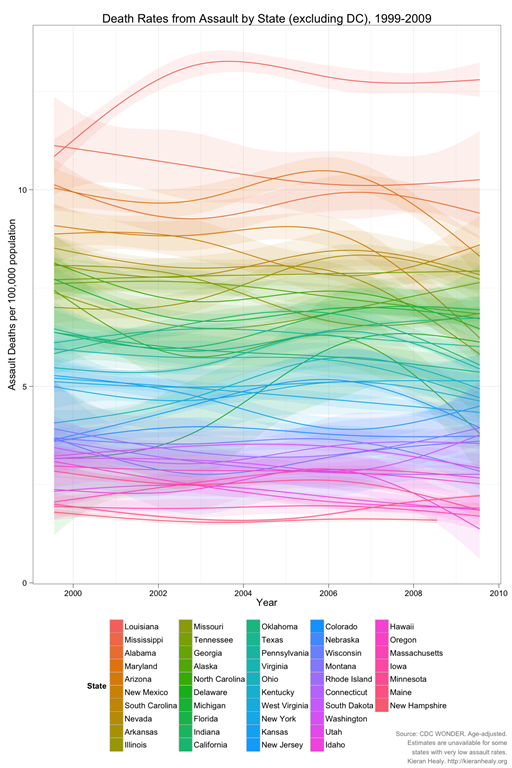 And BTW:  before the Northeasterns get too smug, Healy notes that even if that portion of the country were considered by itself, it would still be more violent by this measure than any other OECD country (save Mexico, which again, is not included here, for data reasons, I assume)  He has a graph comparing US regional numbers to the OECD in his post.
