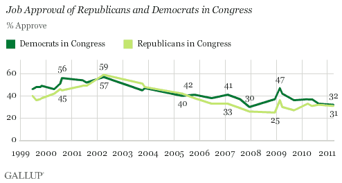 The good news is that voters are still behind the GOP when it comes to spending cuts. According to the poll, 45% say that President Obama and the Democrats aren’t going far enough in theirs spending cut proposals, far more than the number who say that the GOP is going to far. In some sense, then, the GOP has the public on its side in this debate, but not to the extent of backing the GOP position to the point of letting the government shutdown. For Republicans, the lesson seems to be clear – make a deal, avoid a shutdown, and move on to the far more contentious battles over the Fiscal Year 2012 budget to come.