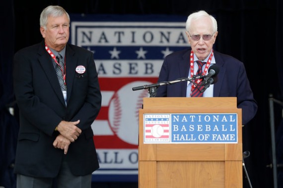 Jobe was honored Saturday by the National Baseball Hall of Fame in a ceremony at Doubleday Field for his pioneering role in pitcher survival. John, standing beside Jobe, whom he met while playing in Los Angeles, said, “I’m glad that I pitched so badly for the White Sox so that Roland Hemond traded me to the Dodgers.”