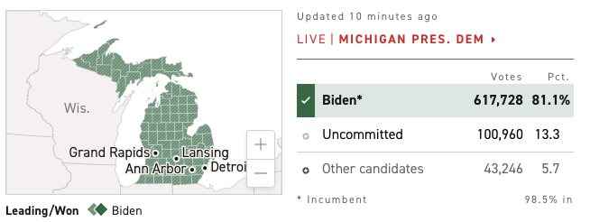 POLITICO: “Biden won the Michigan primary decisively — but not by enough to calm Democratic angst.”