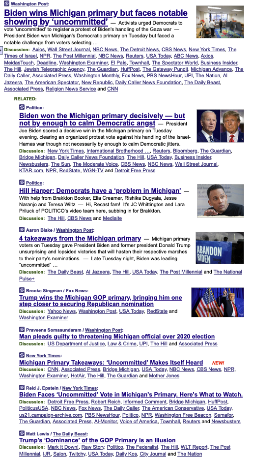 No matter how irritated or disappointed Michigan’s Arab-American communities might be with Biden’s stance on Israel v Hamas, it’s hard to imagine those voters will opt to enable Stephen Miller’s gestapo deportation plan come November by staying home. And so the Uncommitted protest is more flash than substance, and it gave the vacuous political media a new shiny object.