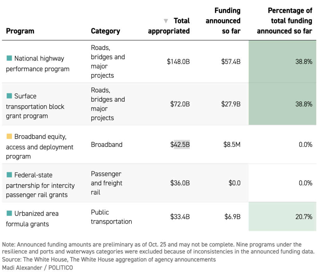 That damning assessment of the impact of one of Biden’s most significant domestic achievements comes after White House events promoting its investments as a fulfillment of a key campaign promise. While the infrastructure bill delivered on a decadeslong call for shoring up crumbling U.S. infrastructure, its passage was overshadowed by Democratic infighting over an entirely different piece of Biden’s agenda — one that still hasn’t passed.