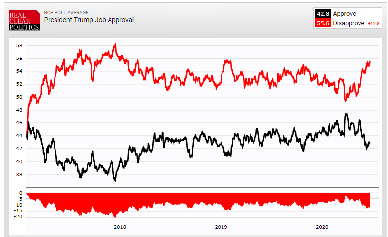 Right now I think the most likely October polling will be a reversion to the mean. Biden will be up by 6-8 points. Normally an incumbent under 50% favorability would be a goner, but I think there is a 4-5 % racist gap (the tendency of racist politicians to do 4-5% better than polling, as people feel more comfortable voting for a racist in a secret ballot than they do telling a stranger over the phone that they support the racist), and Biden probably needs 3-4% of margin to win the EC.