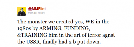 It’s even more preposterous to claim that the United States armed, trained, and funded bin Laden as Moore claimed in his idiotic tweet.