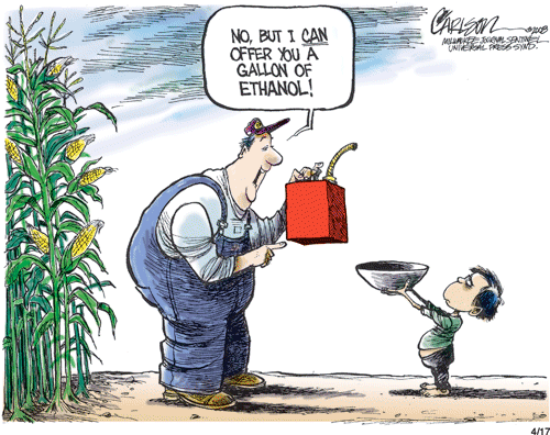 In “Can the World Still Feed Itself?” WSJ’s Brian Carney touches on a subject that I’ve been calling attention to for years: the Western fetish for turning cheap, efficient food into expensive, inefficient fuel.
