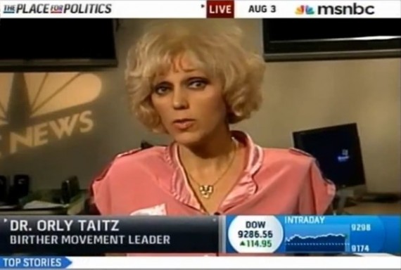 I’m really out of the loop, I guess. I live in California and although I’ve seen references to “Orly Taitz” on blog threads until I read this post I didn’t even know to whom those references were addressed or what those references meant.