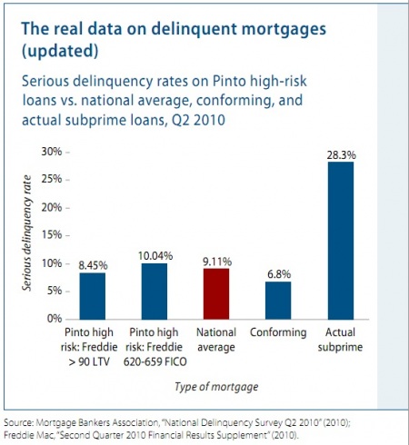 2. The next thing to mention is that the “affordability goals” of the GSEs, as well as the Community Reinvestment Act (CRA), didn’t cause the problems. Randy Krozner summarized one of the better studies on this so far, finding that “the very small share of all higher-priced loan originations that can reasonably be attributed to the CRA makes it hard to imagine how this law could have contributed in any meaningful way to the current subprime crisis.” The CRA wasn’t big enough to remotely cause these problems.