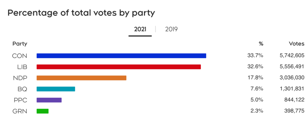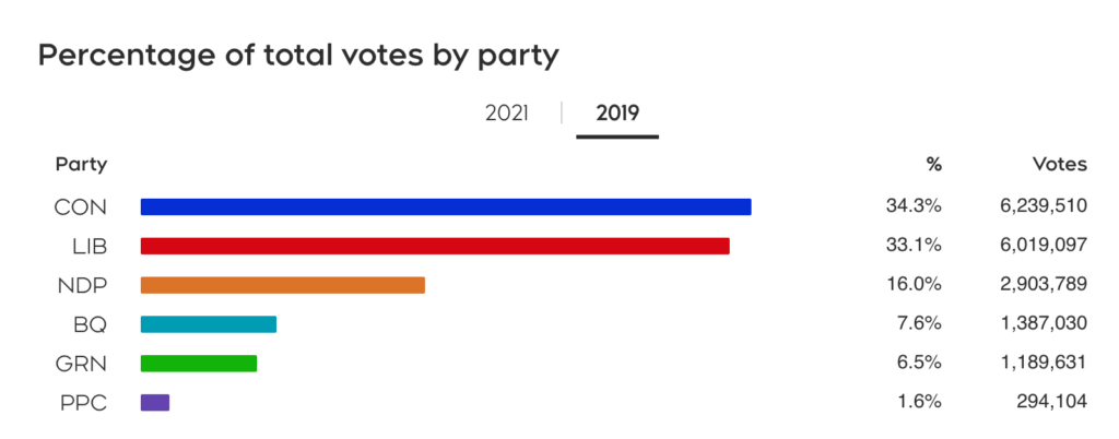 I have zero dogs in the “Trudeau-loving progressives” fight but will say that Canada’s electoral system is producing problematic outcomes from the point of view of representativeness. Specifically, in 2019 and in the 2021 elections (pending final counts) the party that won the most votes nationally did not win the most seats in parliament. Moreover, both 2019 and 2021 will require minority governments.