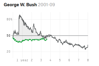 Bush’s 8 years better fits the notion that presidential approval ought to be responsive to dramatic events: