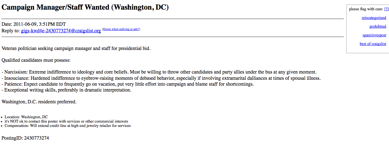 Craiglist Ad For New Gingrich Campaign Staff?
