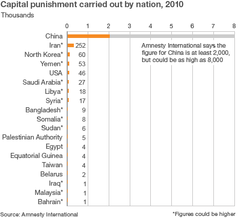 But that figure does not include China, whose executions are thought to be more than all other countries put together.