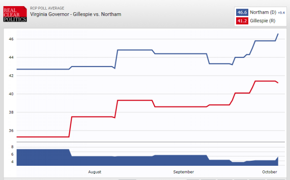 As I said, there’s still a month to go here and there’s a lot that can change. As things stand right now, though, it’s clear that Ralph Northam has the edge here and that Gillespie is going to have to work hard to reverse his momentum.