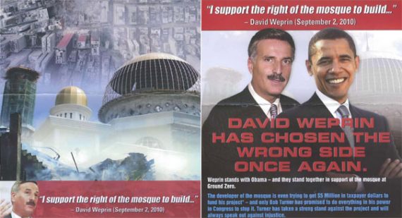 I don’t know Welprin, and I probably wouldn’t support him if I lived in NY-9, but the point isn’t about whether he’s unwilling to stand up for an unpopular cause, it’s whether it’s appropriate for a political party to appeal to bigotry, religious intolerance, and distorted facts in order to win an election.This may very well be a smart political move on the part of the New York GOP, just as it was probably a smart political move for Jesse Helms to run his affirmative action ad, but that doesn’t make it right.
