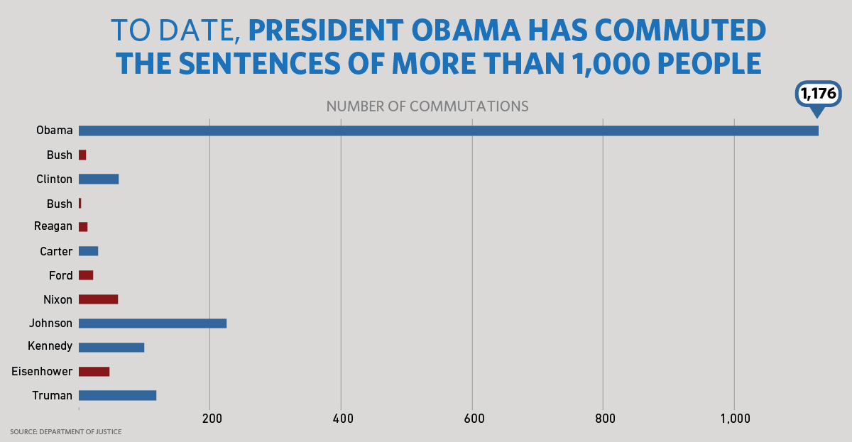 Today, President Obama granted clemency to 231 deserving individuals — the most individual acts of clemency granted in a single day by any president in this nation’s history. With today’s 153 commutations, the President has now commuted the sentences of 1,176 individuals, including 395 life sentences. The President also granted pardons to 78 individuals, bringing his total number of pardons to 148. Today’s acts of clemency — and the mercy the President has shown his 1,324 clemency recipients — exemplify his belief that America is a nation of second chances.
