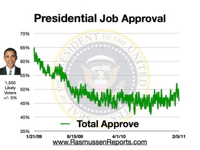 He is down in Gallup too. It might be that the rise in approval numbers was transitory and was an emotional reaction to the Tucson speech and the compromise over taxes.