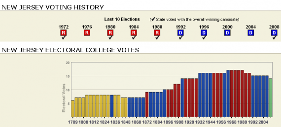 New Jersey has voted for the Democratic nominee the last five straight elections. They last voted Republican in 1988, the last of a string of six consecutive elections in which they did so. New Jersey has moved left. The Republicans have moved right. Until one of those things change, New Jersey will vote Democrat. (See also: California.)