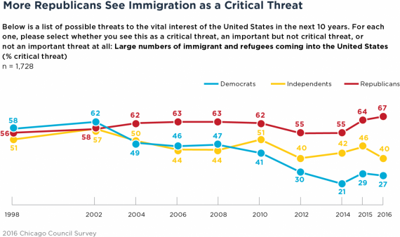 Newly-released polling from the Chicago Council on Global Affairs suggests the populism is here to stay. Concerns about immigration, refugees and globalization predate Trump in the GOP – and thus appear unlikely to dissipate whether he wins or loses.