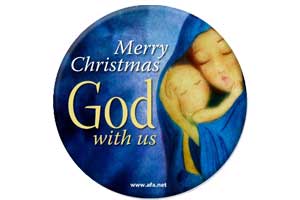 I’m grumpier than the average atheist but even I find that absurd. I can’t imagine many American Jews or Muslims — let alone those banking in Oklahoma — would be offended by being wished a merry Christmas. And, while I don’t know what the fragment “God With Us” means, precisely, I wouldn’t interpret it as a challenge to my non-belief or a signal that I wasn’t welcome. (I don’t know if the buttons in question were the one pictured above, which I found online. If so, they’re definitely Christian rather than nondenominational. But my reaction would still be the same.)