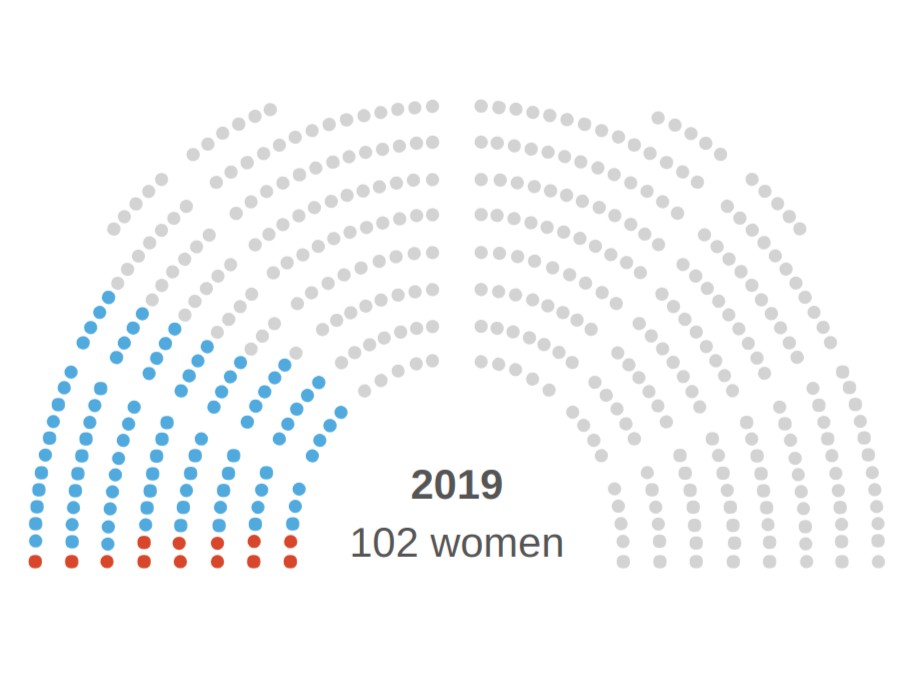 Two (interrelated) things happened in 2018: Voters elected a blue wave, and that blue wave had a lot of women in it.