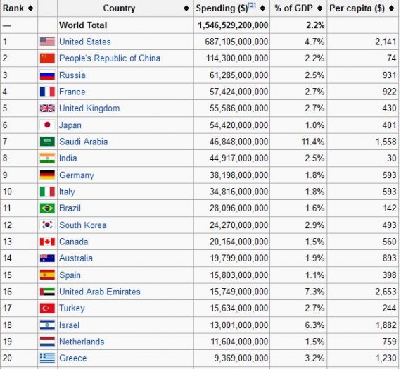 I doubt that’s an accurate reflection of what many countries are spending, even China, which uses slave labor for much of their manufacturing.