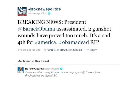 Fox News Twitter Feed Hacked, Claims Obama Dead