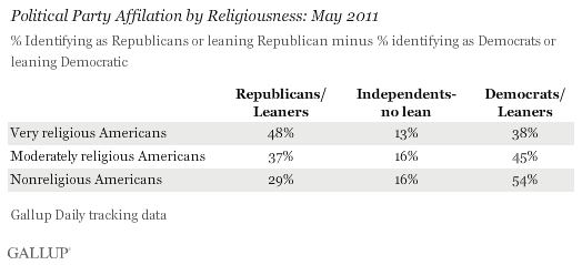 Gallup Discovers The Obvious: Religious Americans More Likely To Be Republican