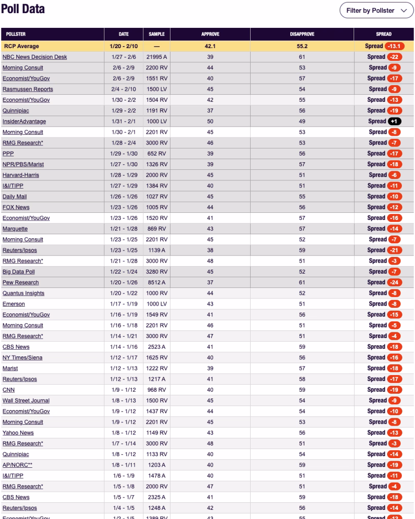 Now, on the one hand, it’s not that big a loss. There is no shortage of polling on Trump job approval. Here’s the aforementioned RCP list: