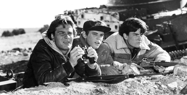 ORG XMIT: NYET661 FILE – In this 1984 file photo originally released by MGM/United Artists, actors, from left, Patrick Swayze, C. Thomas Howell and Charlie Sheen are shown in a scene from the film, “Red Dawn.” (Photo by MGM/United Artists via AP) [Via MerlinFTP Drop]