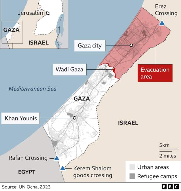 The evacuation area includes the whole of Gaza City and two major refugee camps, Jabalia and Beach Camp.