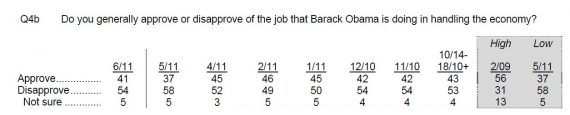 Just as voter focus on the economy hurt Democrats in November 2010, there’s a potential that economic dissatisfaction could be a problem for President Obama in 2012, especially since his job approval on the economy is still fairly low (PDF):