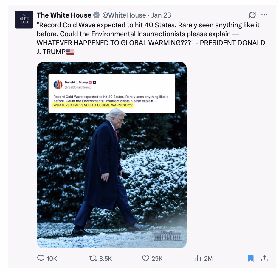 This is cable news/talk radio logic. Oh, look, it’s cold outside! That proves climate change isn’t real!