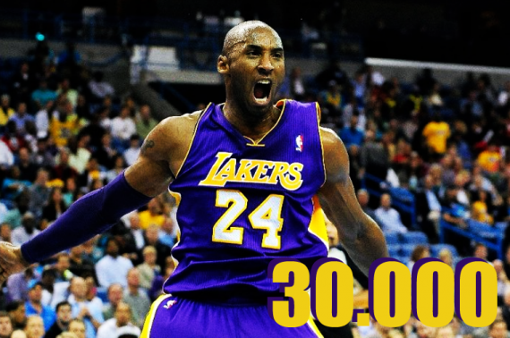 Bryant made a slashing right-handed runner in the lane with 1:16 remaining in the second quarter against the New Orleans Hornets, giving him 30,001 career points at just 34 years, 104 days old.