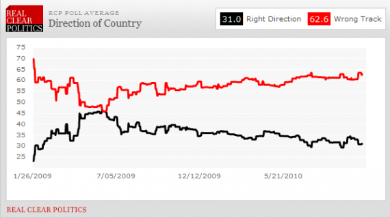 And, perhaps, most significantly, the bellwether right track/wrong track poll numbers are at nearly the same level they were at on the eve of the 2008 elections:
