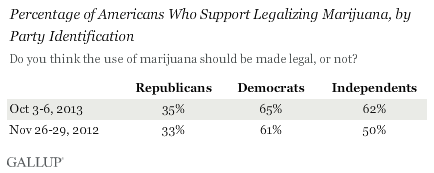 WASHINGTON, D.C. — For marijuana advocates, the last 12 months have been a period of unprecedented success as Washington and Colorado became the first states to legalize recreational use of marijuana. And now for the first time, a clear majority of Americans (58%) say the drug should be legalized. This is in
