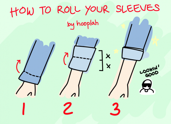 For the uninitiated, here’s the process of rolling ones sleeves the Marine way: Fold the cuff upwards. Repeat until sleeves are desired length.