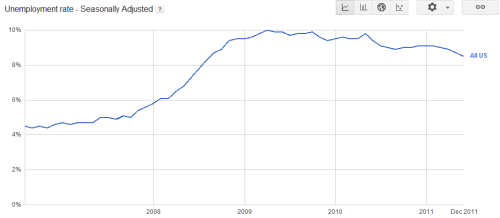 Something to note, though, is that the unemployment figure is going down because more people are just giving up looking for work and dropping out. If you don’t look for work, you don’t get counted. Then, if the unemployment rate does continue to fall, people will feel the economy is getting better and go back to start looking for work…thus increasing the unemployment rate. I think it’s a bit early to be saying things such as this. We still have, what, ten months (not counting January)?