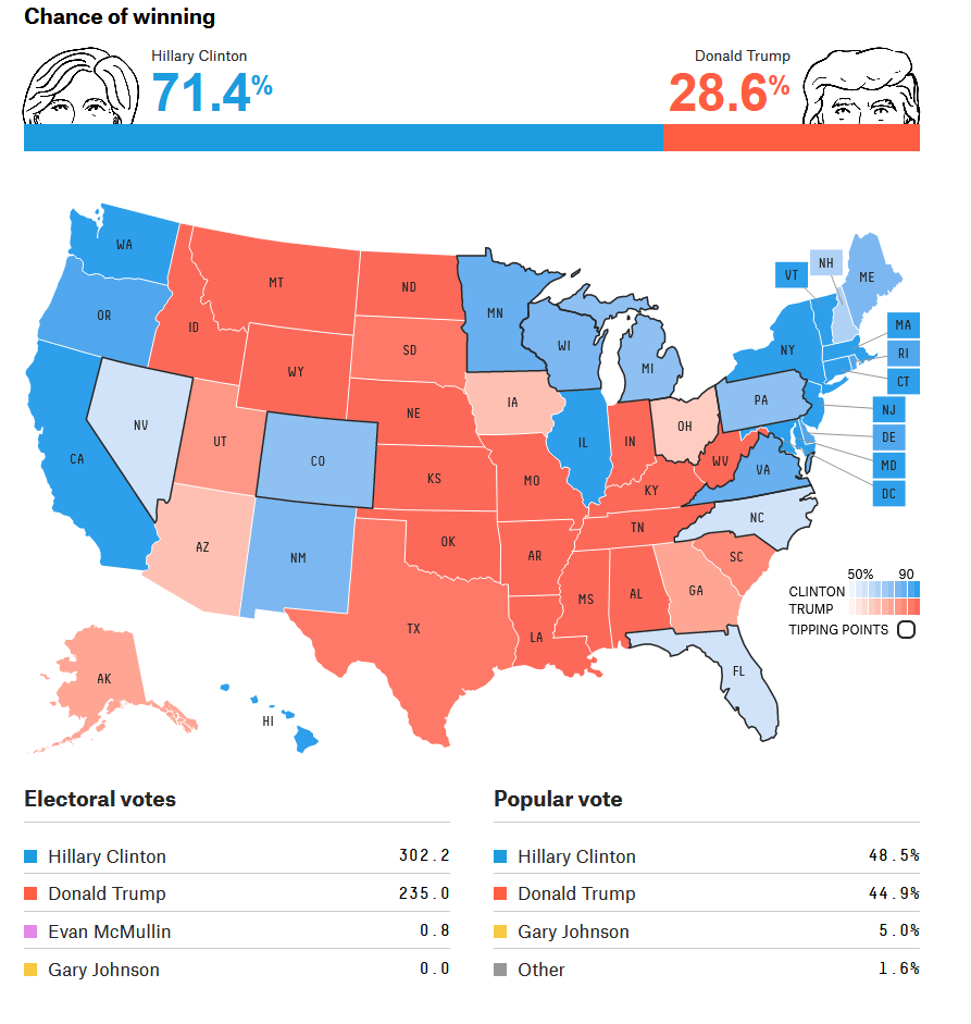 | Donald J. Trump (Republican, American Independent, Conservative) | 62,984,828 | 46.09% |