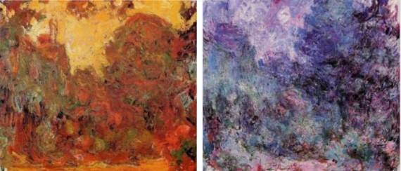 A good example of what happened to Monet’s vision after the lens was removed from his left eye can be seen in the two paintings above: