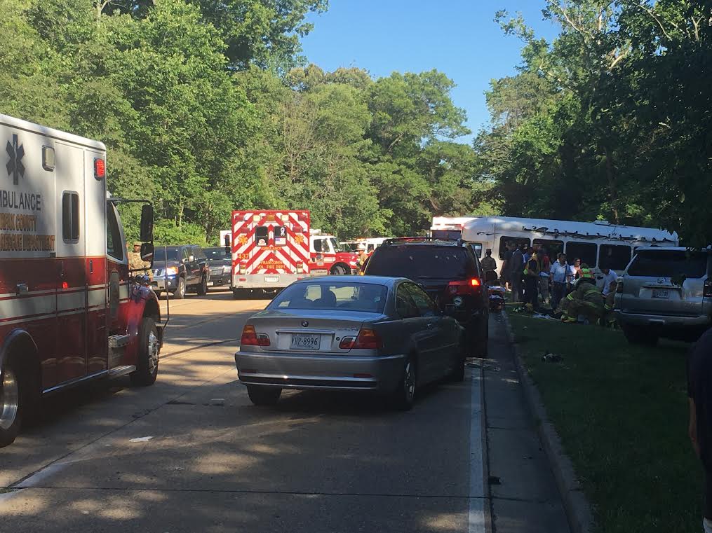 I tend to go past Mount Vernon and take the Parkway, even though it’s a slightly longer trip, to avoid the stop-and-go traffic on Route 1. I was headed northbound to pick up my girls for swim practice and was right behind the bus. We were in the left of two northbound lanes and the bus struck a Mini Cooper in the left of two southbound lanes; I don’t know which vehicle was slightly out of its lane.