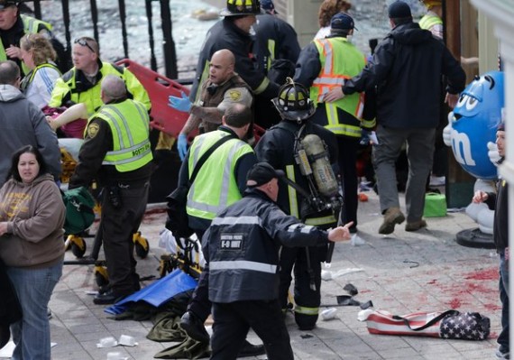 The Associated Press reported that the authorities were helping injured runners leave the scene and bloody spectators were being carried to a medical tent that was being used for runners.