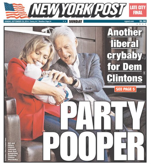 This is how The New York Post chose to mark the birth of Chelsea Clinton’s baby yesterday: