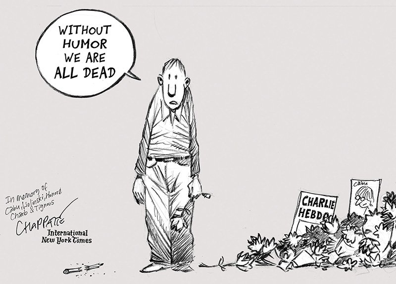 Chappatte is more optimistic:Curiously, I remain positive. This is the era of images. In a world of short attention span, their power has never been so big. Out there is a whole world of possibilities, not only in editorial cartooning, still or animated, but also in new fields like on-stage illustrated presentations and long-form comics reportage – of which I have been a proponent for the last 25 years. (I’m happy, by the way, to have opened the door for the genre at the NYT with the “Inside Death Row” series in 2016. The following year, another series about Syrian refugees by Jake Halpern and Michael Sloan got the NYT a Pulitzer prize.) It’s also a time where the media need to renew themselves and reach out to new audiences. And stop being afraid of the angry mob. In the insane world we live in, the art of the visual commentary is needed more than ever. And so is humor.