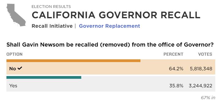While it looked like California Governor Gavin Newsom might be recalled and replaced by conservative talk show host Larry Elder as recently as a month ago, it looks like voters chose nearly two to one to stick with the devil they knew.