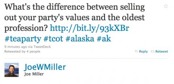Howard Kurtz and others got into a bit of an uproar yesterday over this tweet from Alaska Republican Joe Miller: