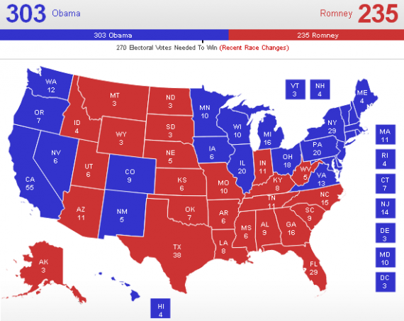 Contrary to what James is saying, I think the race is more or less tied. Obama need to win three out of Michigan, Florida, Pennsylvania and Ohio. Romney can win two or more of these States and we don’t know the effect of new voter ID laws.